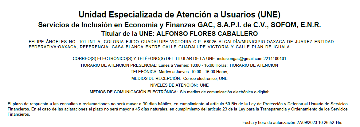 La UNE es la Unidad Especializada por medio de la cual las Instituciones Financieras reportan a la CONDUSEF las Consultas, Reclamaciones y Aclaraciones de los usuarios de servicios financieros de productos o servicios financieros y sus causas, que conozcan, capten, reciban y/o atiendan de forma directa o indirecta en cualquier nivel de atención, y por cualquier medio de recepción o canal que pongan a disposición, así como la información de los datos de localización del Titular de la UNE y del o de los Encargados Regionales, y las demás obligaciones establecidas en la Ley de Protección y Defensa al Usuario de Servicios Financieros y la Disposición en Materia de Registros ante la CONDUSEF.